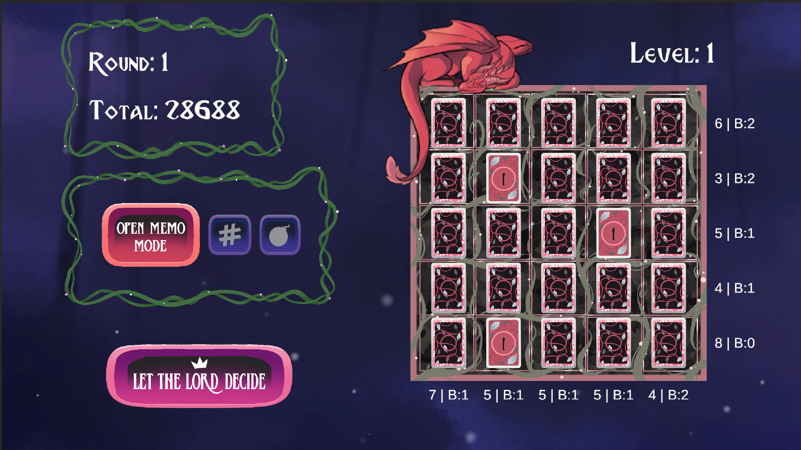 Your goal is to flip over all of the "2" and "3" point cards that are on the board. Look at the numbers on the sides to figure out how many points are in each row/column; but be careful, the one you flip over may be a bomb